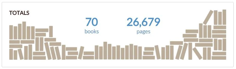 Hooray for reading! Here is the complete Goodreads graphic of the 70 books I read this year, but pasted all piecemeal and unclickable since Goodreads refuses to make these things embeddable. Shame. Just put the title into Goodreads to see my review.