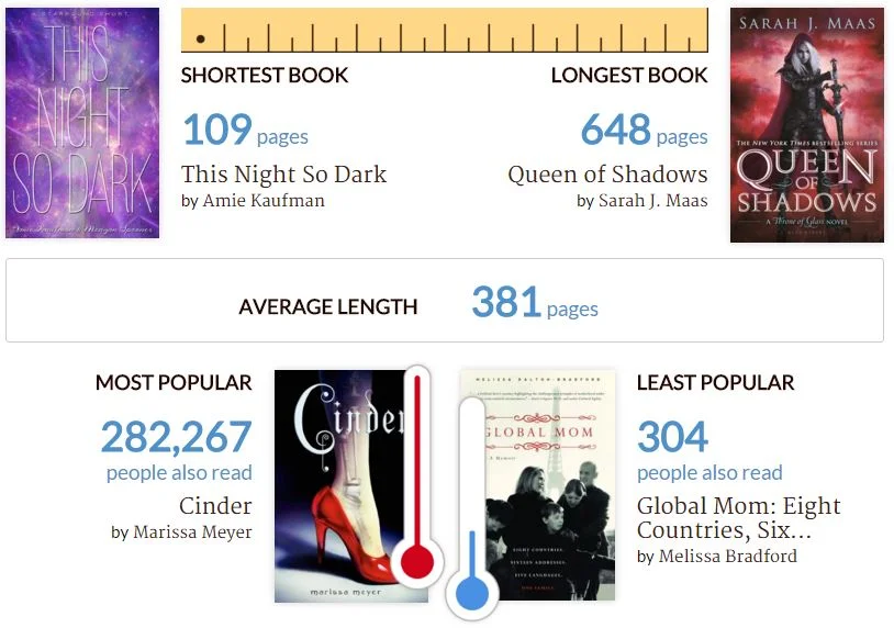 The longest stretch between completion of a book was eighteen days in May/June between The Scorpio Races and Global Mom.