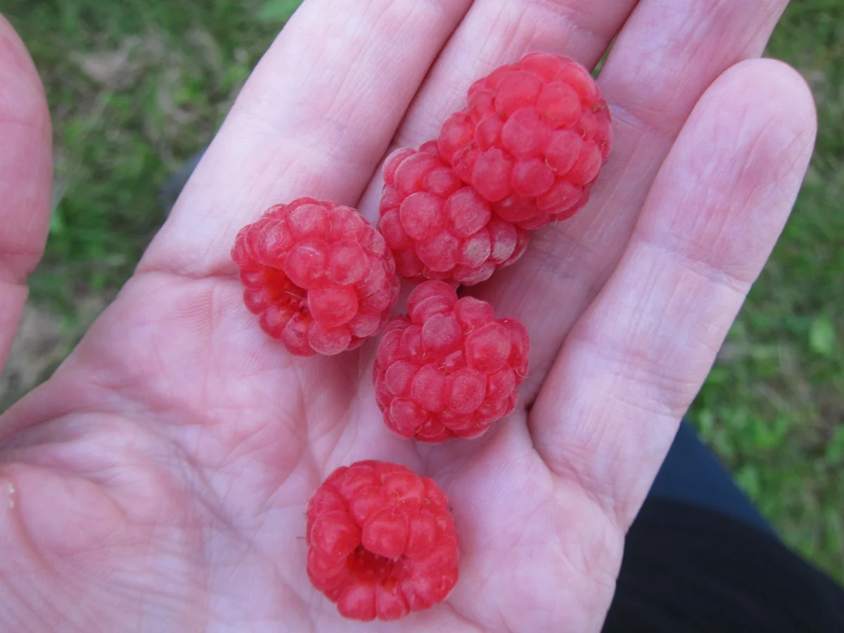 On the way home, four of us had made it up a hill and were waiting for Miriam. She was taking a little longer than she should have, and when we looked back, what do you know - she was picking wild raspberries in the forest by the trail! She has an eye for spotting berries. She and I stopped three times on the way home to pick raspberries, finally making a deal with each other after the last time that we would not stop anymore, no matter how many bushes we saw.